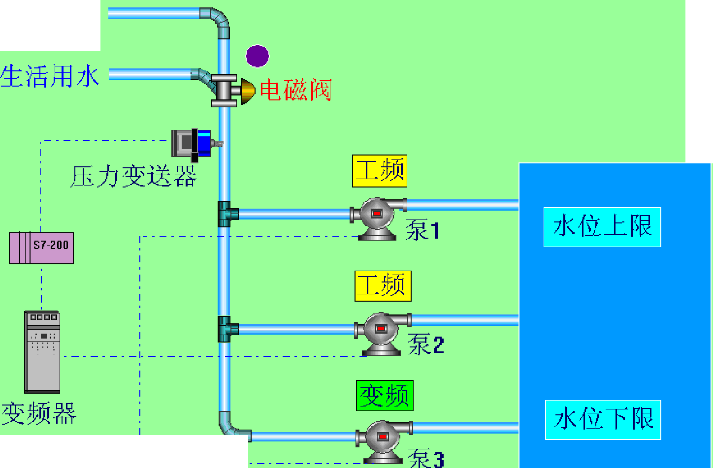 采用變頻器啟動和停泵,無啟動電流,延長水泵壽命